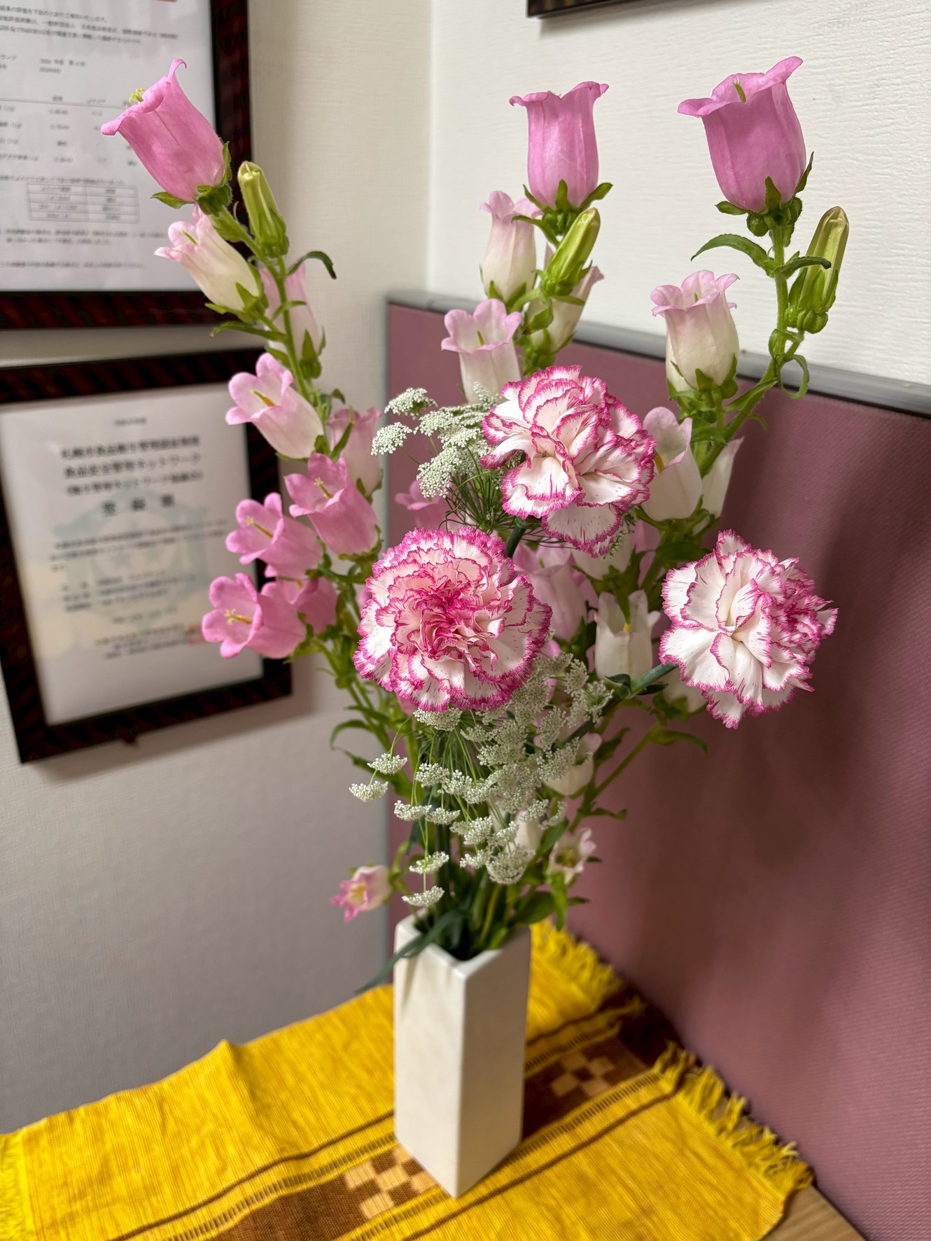 雪が舞う中に咲くスイートピーのイメージで今週は皆様をお出迎えします。