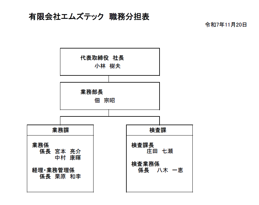 - 平成12年10月有限会社レアの1事業として札幌市南区にて業務開始平成14年3月有限会社エムズテックとして札幌市北区北13条西4丁目5番地1 建コンハイツ501号にて開業平成20年2月札幌市北区北13条西4丁目5番地1 建設コンサルタントビル2Fに移転平成21年10月札幌市区画整備に伴い、現住所に変更令和7年1月代表取締役社長 小林樹夫、代表取締役会長に就任業務部業務課長 羽根田渉、社長に就任