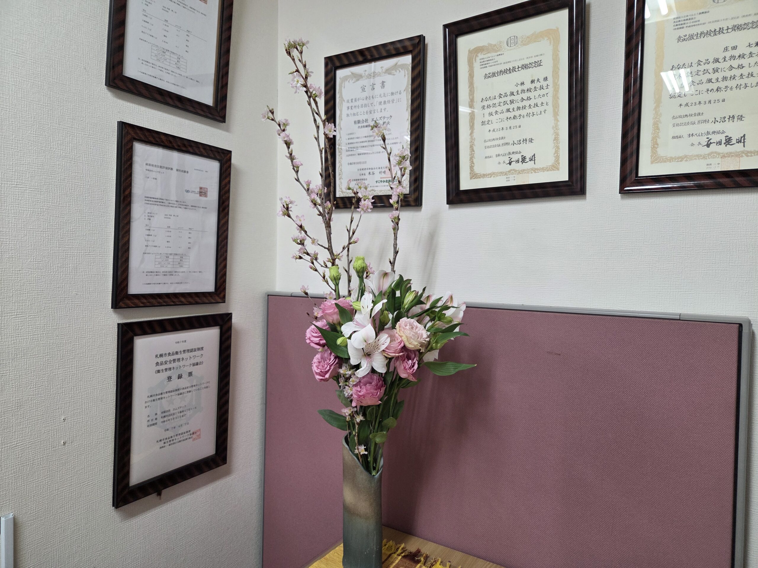 北海道の桜の便りは未だですが、季節先取りで今週は桜です。アルストロメリアとトルコキキョウも春色で彩りました。弊社、20日に26回目の設立記念日を迎えます。